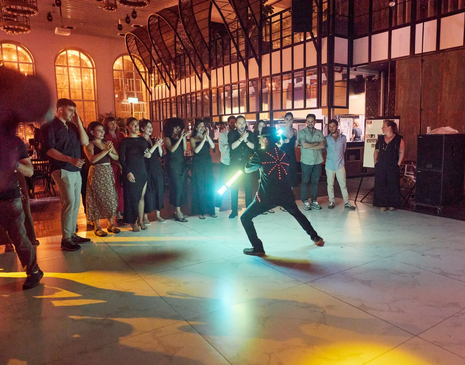 שילוב מדויק של מופעי אש ואור, טכנולוגיית LED מתקדמת, בימוי במה ותפאורה מוקפדת ליצירת חוויה עוצמתית, ממותגת וברמה הפקתית גבוהה.
